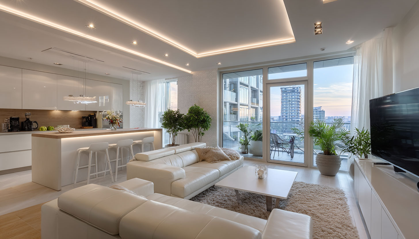 השילוב המדויק בין איכות החומרים לטכנולוגיה יוצר בסיס מושלם להמשך עיצוב הסלון בסגנון אישי ומרשים.